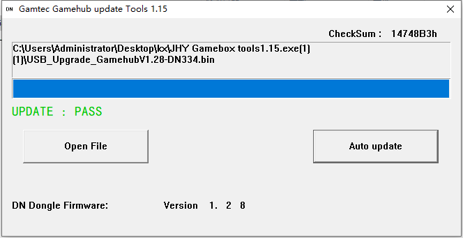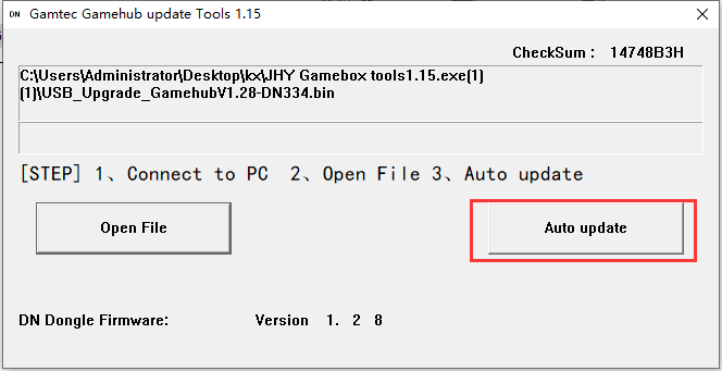 5.Wählen Sie die Datei „USB_Upgrade_GamehubV1.28-DN334.bin“ und dann „Automatische Aktualisierung“ aus